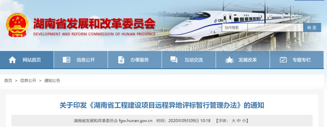 关于印发《湖南省工程建设项目远程异地评标暂行管理办法》的通知各市州发展改革委、住房城乡建设局、交通运输局、水利局、公共资源交易中心,各有关单位: