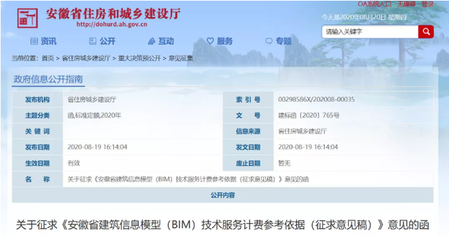 《安徽省建筑信息模型(BIM)技术服务计费参考依据(征求意见稿)》