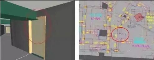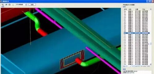 根据建筑、结构、机电的BIM模型进行管线的布置,在发生与总包BIM模型发生冲突或者碰撞时,相互协调碰撞,利用BIM软件把建筑、结构等影响到机电专业的模型,整合到一个模型当中,利用软件自动检测碰撞功能,分别检测机电各专业间碰撞、机电与建筑和结构碰撞等,把问题提前优化,把影响较大的问题反馈给相关专业协调修改。上述图,可以看出发生碰撞的地方比较明显,通过碰撞检测可以看出桥架与风管有明显的冲突,通过协商,把桥架的位置进行调整,解决碰撞。利用BIM技术检测消防和机电之间的碰撞问题,设计不合理问题,有效控制建筑和结构图纸的一致性,避免了在施工过程因建筑和结构设计冲突,造成的返工、拆改。 利用BIM模型检测出的结构梁与门的碰撞,在传统的2D平面图纸里很难发现此类问题。案例1:在图中所示,可以看出红色的地方发生了碰撞,我们需要调整管道的避让,其中蓝色部分是风管,尽量避免风管90°弯曲,所以调整水管的位置,绿色部分是水管部分,最终结果我们需要进行碰撞检查后进行修改,避免施工中出现错误。